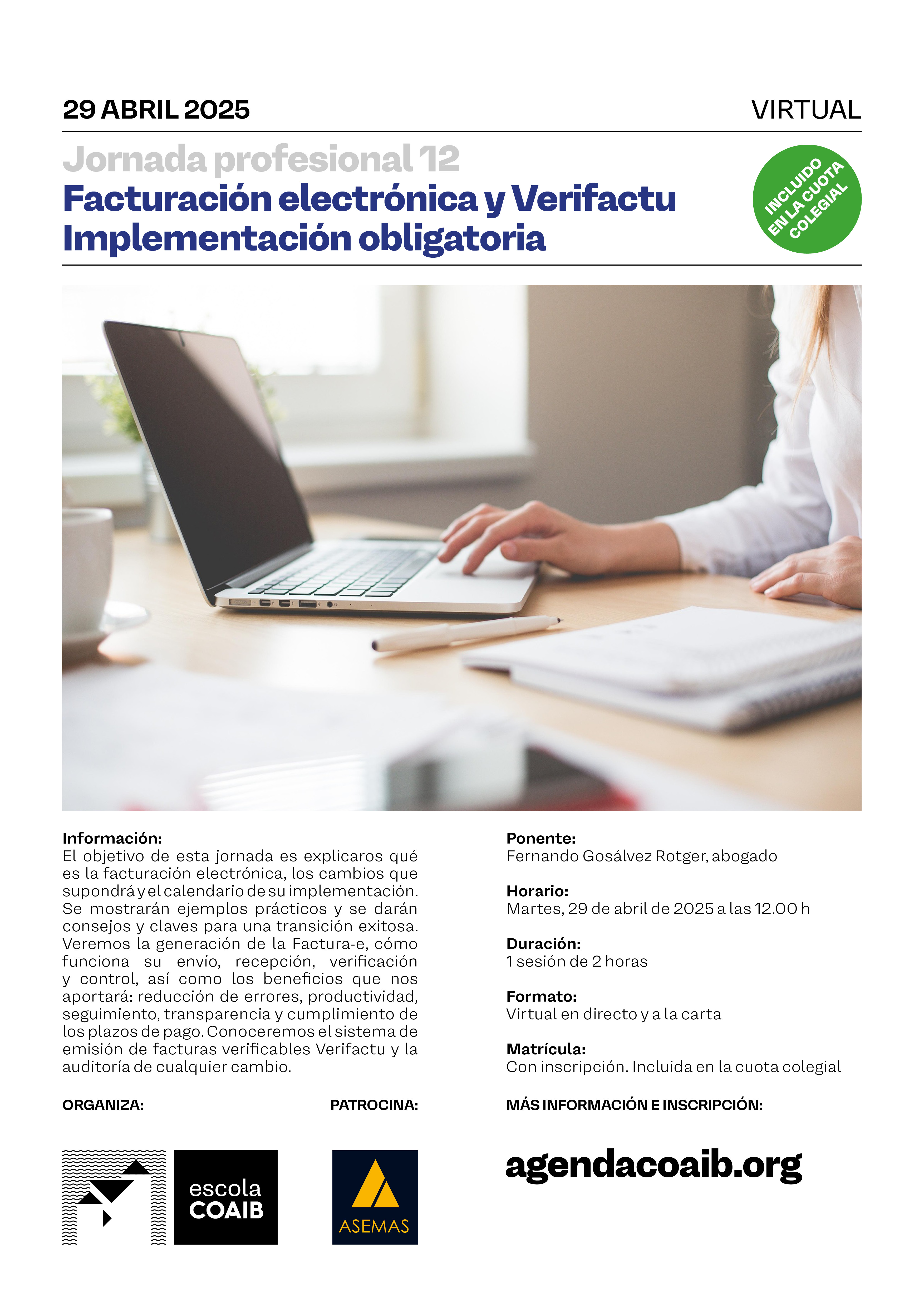 Jornada professional 12 /Facturació electrònica i Verifactu: Implementació obligatòria. 29 d’abril de 2025 a les 12.00 h