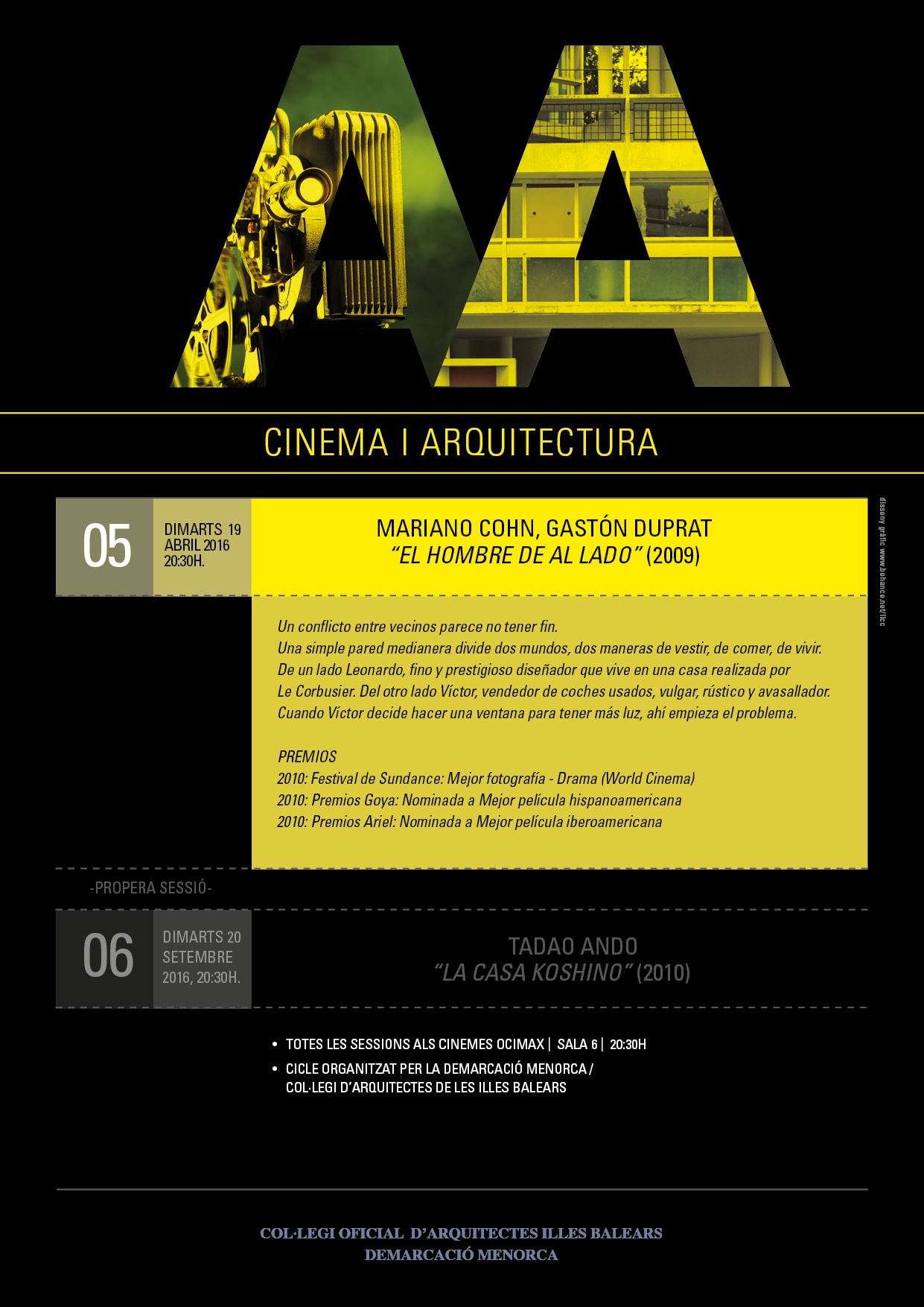 Demarcació Menorca del COAIB - Ciclo "Cinema i Arquitectura": El hombre de al lado. Maó, 19 d'abril de 2016.