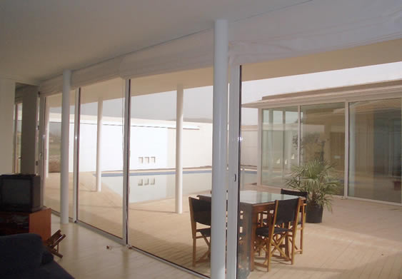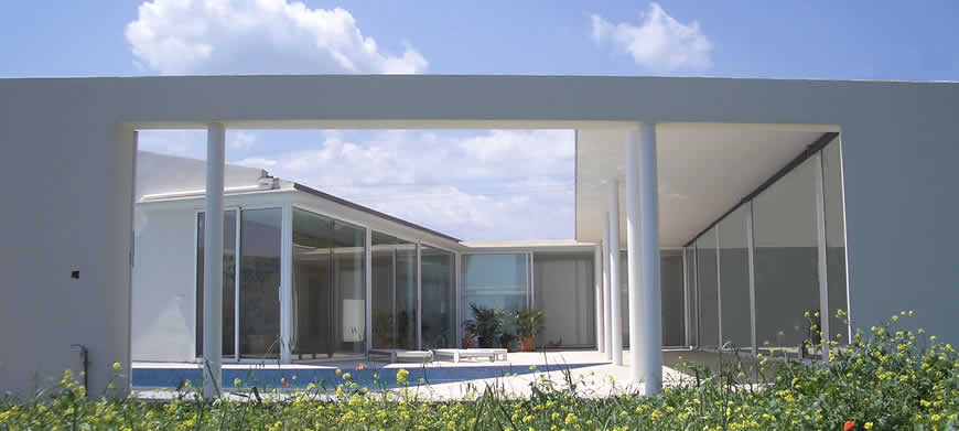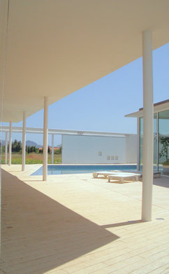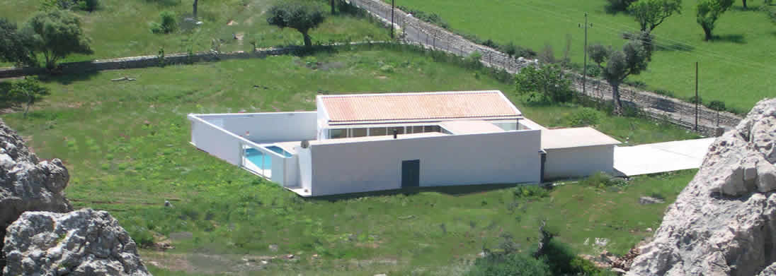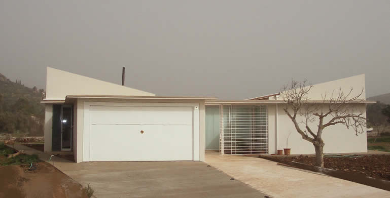 Situat en una "parcel·lació rústica", aquest habitatge pateix l'inconvenient de la proximitat de la carretera Pollença-Port i d'altres amb motiu d'edificacions properes, pel que s'opta, envers la consecució de la intimitat desitjada, per una àrea quasi tancada pels murs perimetrals de façana i els de tancament del pati, que s'obriran discrecionalment. Així, ambdós cossos (en què la configuració dels plànols inclinats de coberta obeeixen a imposicions de la Normativa Urbanística) més els murs de tancament del pati conformaran l'àrea contenidora de la piscina, terrassa coberta i descoberta contigua a les parts totalment vidriades i constituiran referents propers de totes les dependències.