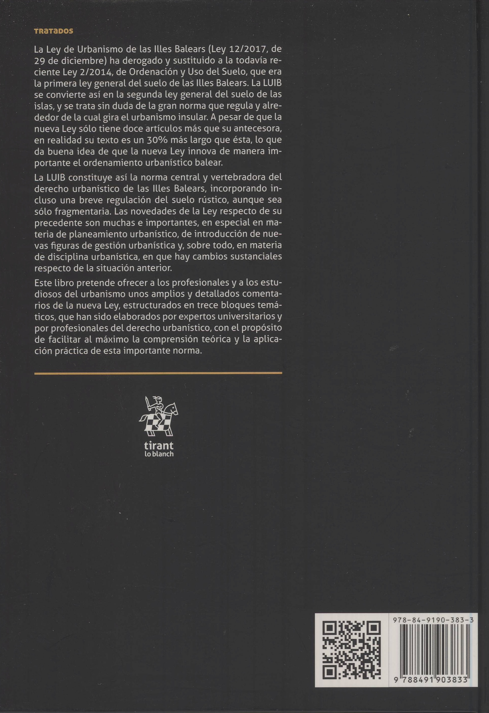 Recientemente ha salido a la venta la publicación Comentarios a la Ley de Urbanismo de las Illes Balears, editada por Tirant lo blanch, en formato papel y electrónico, siendo coautores y directores Avelino Blasco Esteve, catedrático de Derecho Administrativo UIB y Jaume Munar Fullana, jefe del Servicio Jurídico de Urbanismo del Consell Insular de Mallorca y colaborador del departamento de Derecho Público de la UIB.