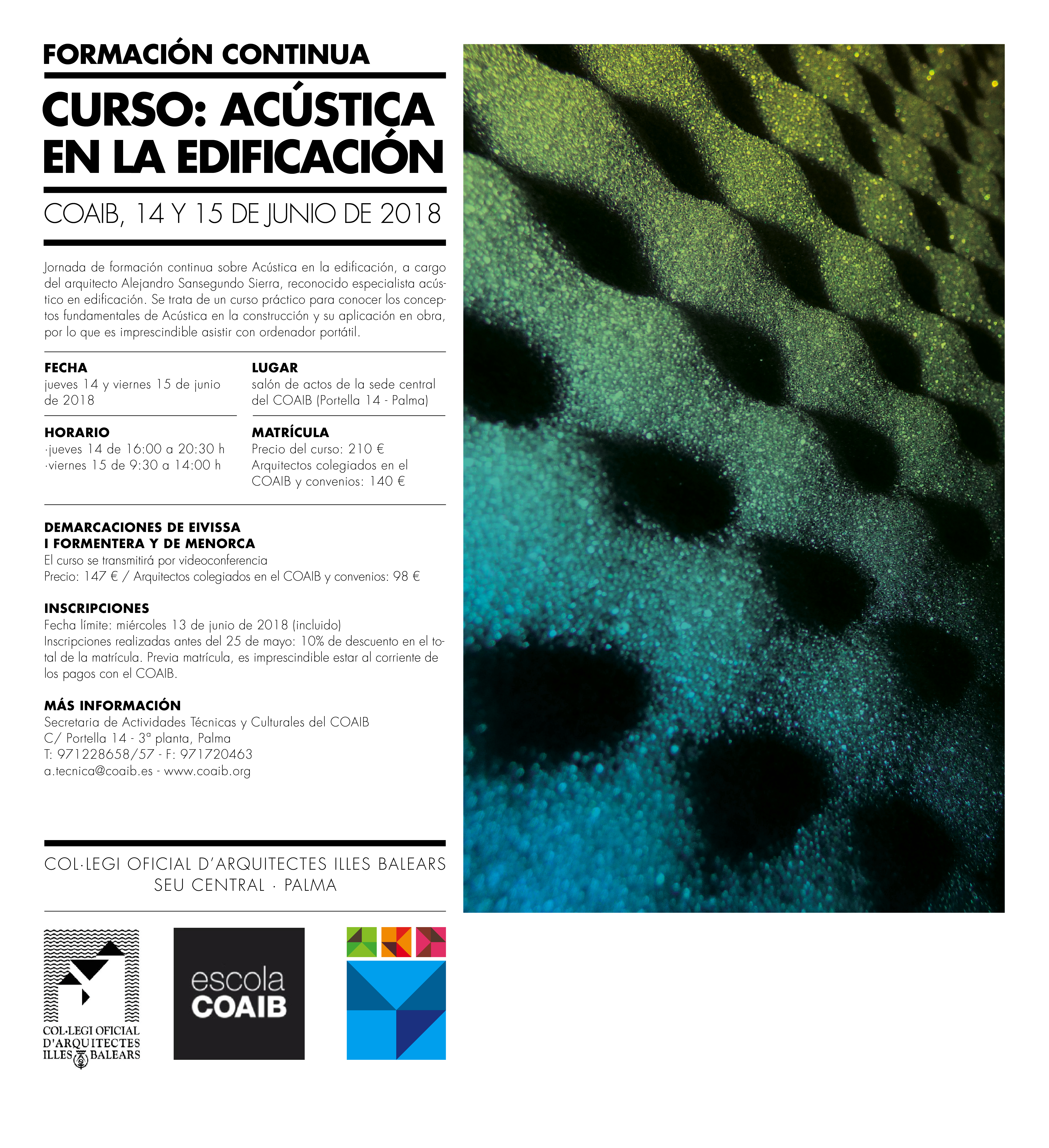 Formación continua. Curso: Acústica en la edificación. COAIB, 14 y 15 de junio de 2018.