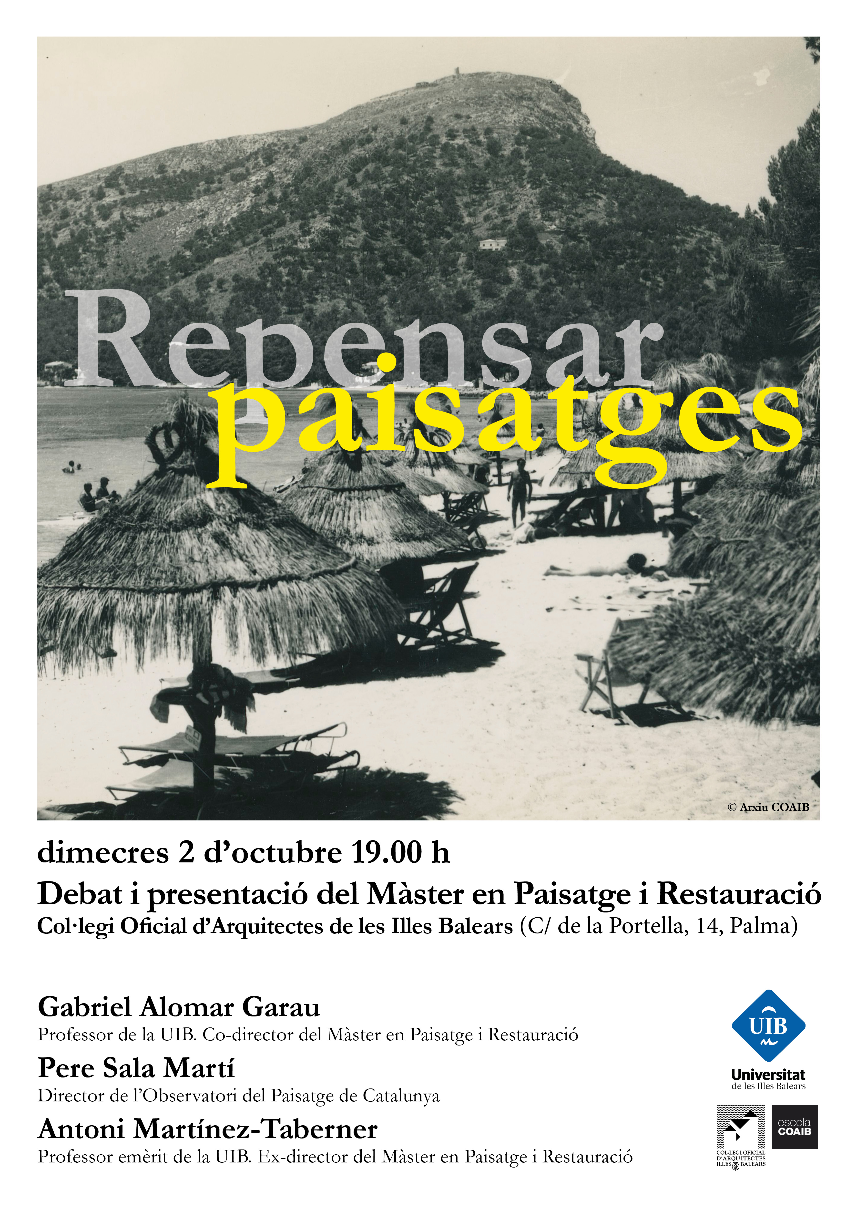 El Col·legi Oficial d’Arquitectes de les Illes Balears y la Universitat de les Illes Balears organizan el debate “Repensar paisajes” en el marco de la presentación del Máster en Paisaje y Restauración 2019-2020 de la UIB.