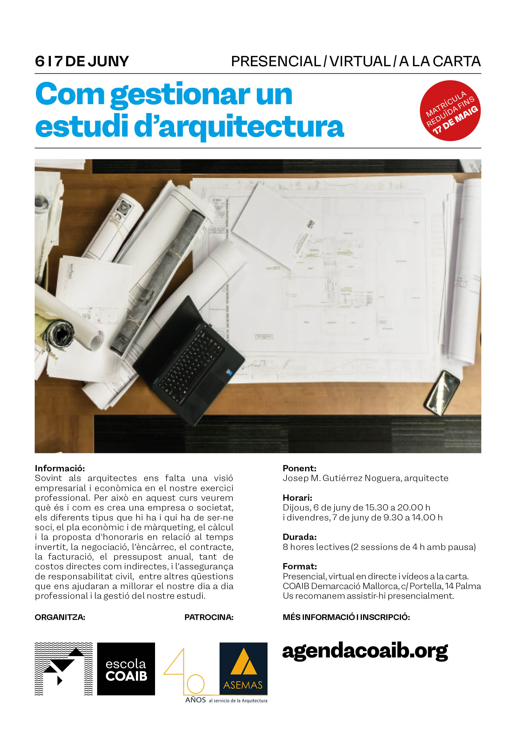 Presencial: en la sede del COAIB Mallorca (carrer Portella, 14, Palma)