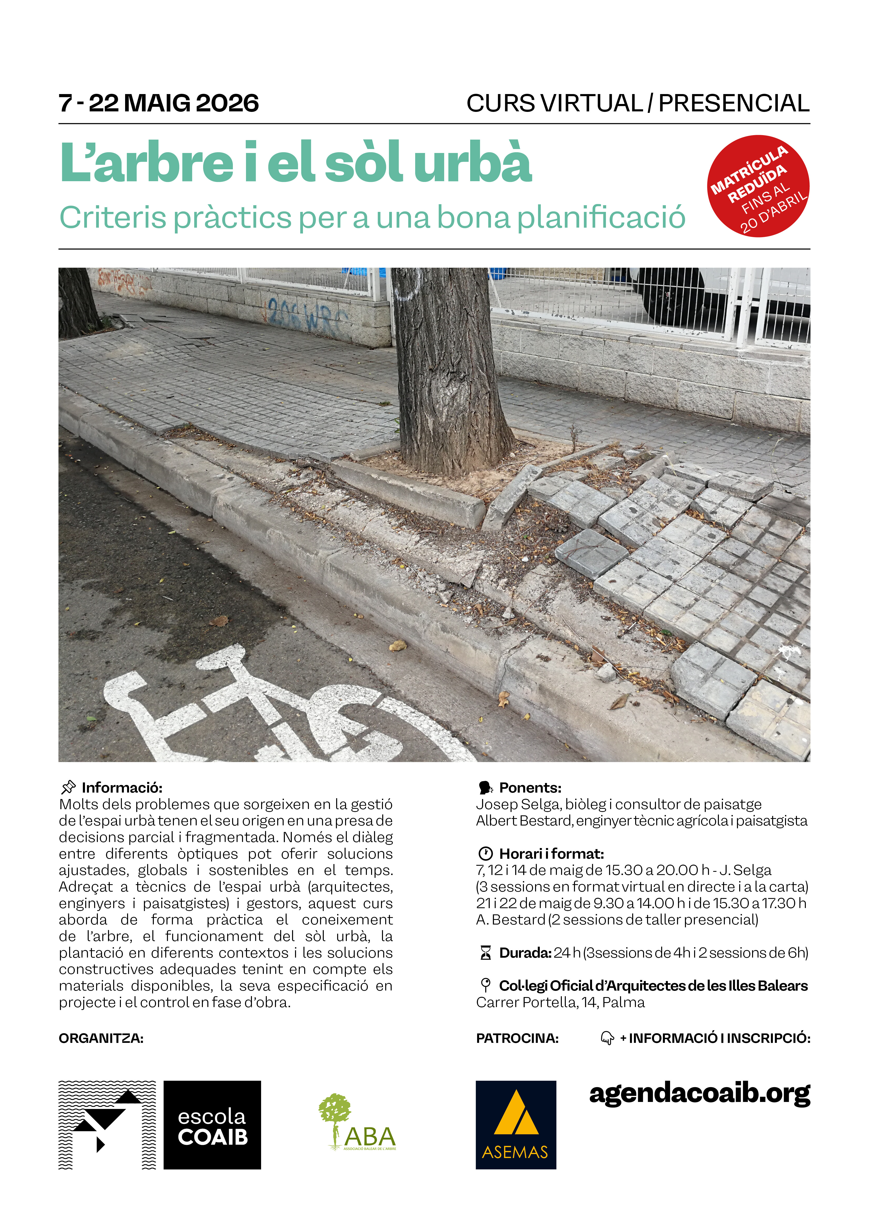 Curso El árbol y el suelo urbano. Criterios prácticos para una buena planificación. Del 7 al 22 de mayo de 2026