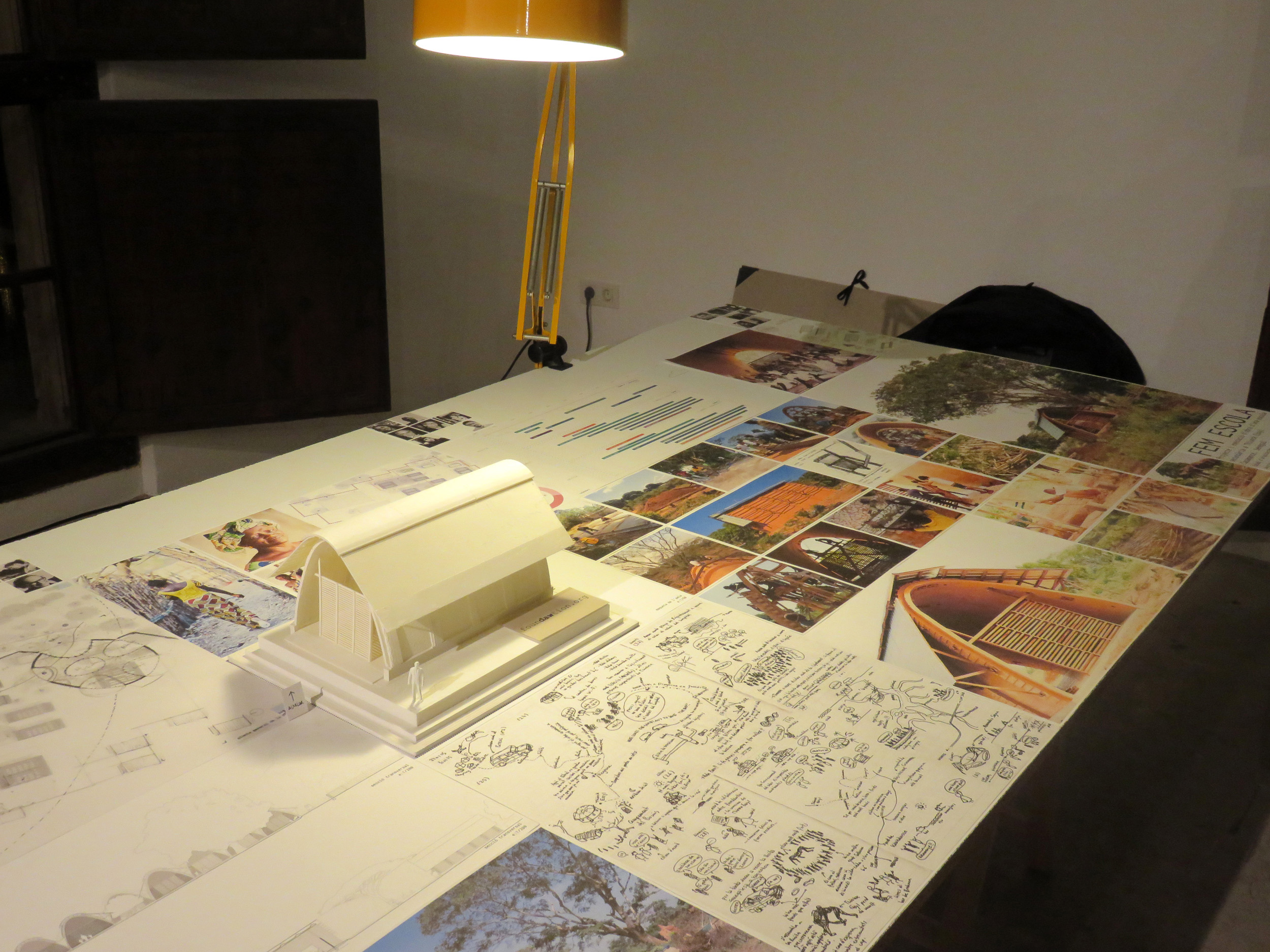 El material de esta exposición está compuesto por planos, maquetas, fotografías y otros soportes que han sido cedidos por los arquitectos Lluís Gené, Xavi Llabrés, Xesca Femenías, Aina Tugores y David García, quienes han trabajado en proyectos solidarios de arquitectura y cooperación en diferentes zonas de Camerún, Senegal y Mali.