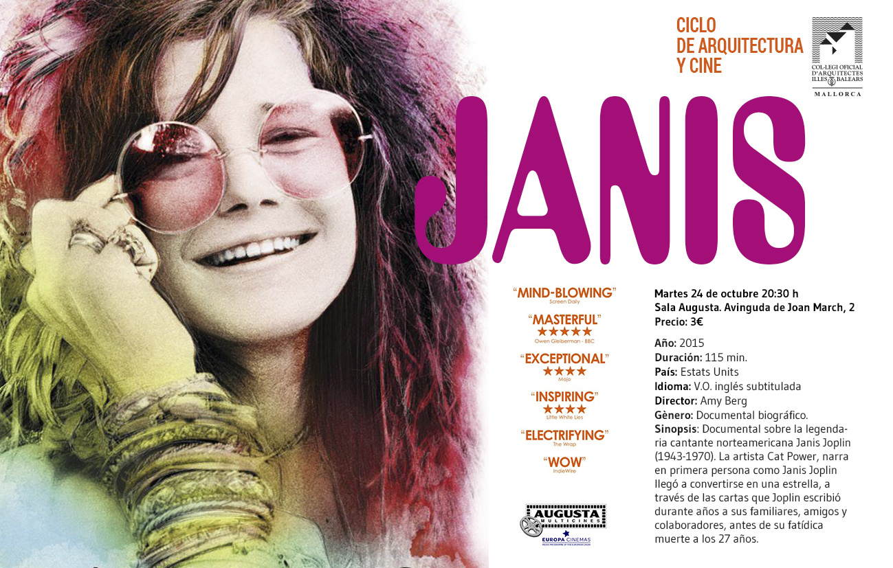Ciclo “Arquitectura y cine”. Otoño 2017. Periodicidad mensual. Janis. Multicines Augusta (Sala 2), martes 24 de octubre de 2017.