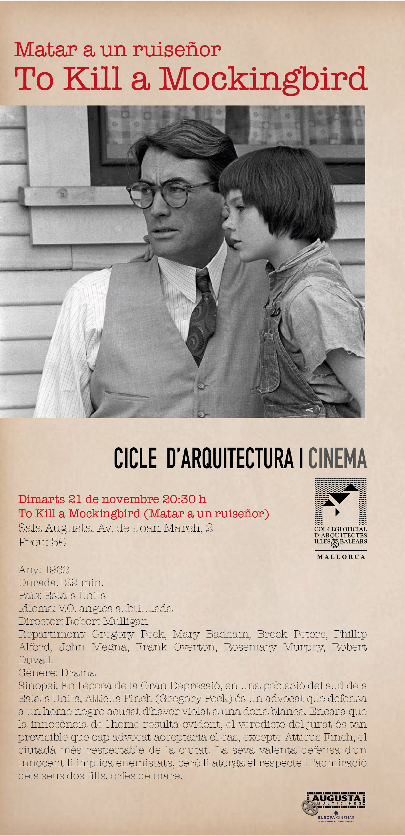 Lugar: Augusta Multicines, Sala 2 (Avda. Joan March, 2 – Palma)