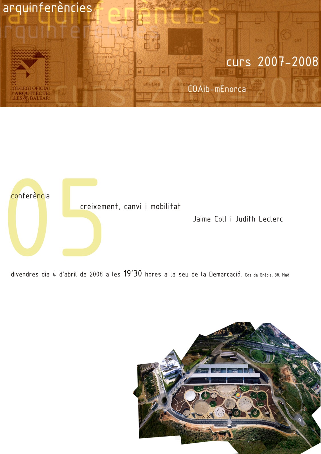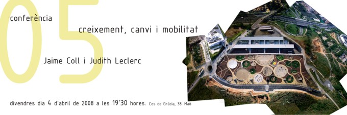 La Demarcación de Menorca del COAIB organiza, en el marco del ciclo de Arquinferències 2008, una conferencia a cargo de los arquitectos Jaime Coll y Judith Leclerc, bajo el título "Crecimiento, cambio y movilidad".
