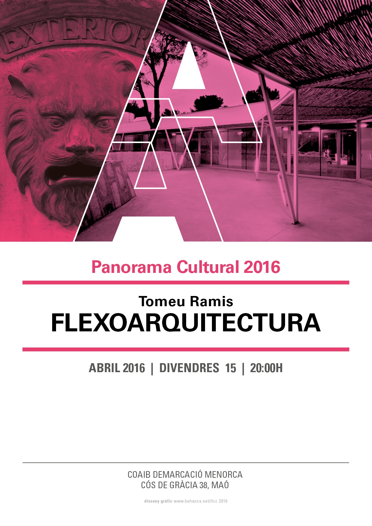 La Vocalía de Cultura de la Demarcación de Menorca del COAIB organiza la tercera conferencia “Exterior” dentro del “Panorama Cultural 2016” a cargo del arquitecto Tomeu Ramis, socio del estudio Flexo arquitectura (junto con Aixa del Rey y Bárbara Vich), cuya obra ha recibido numerosos premios nacionales e internacionales destacando, simultáneamente, su involucración docente en prestigiosas escuelas como la ETSAB y la ETSAV (Barcelona) o la ETH-Swiss Federal Institute of Technology (Zurich).