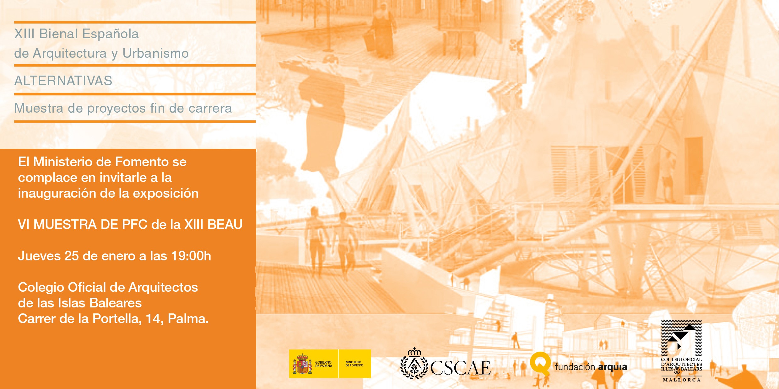 Inauguración de la Exposición XIII Bienal Española de Arquitectura y Urbanismo (XIII BEAU). VI Muestra de Proyectos Fin de Carrera. COAIB, 25 de enero de 2018.