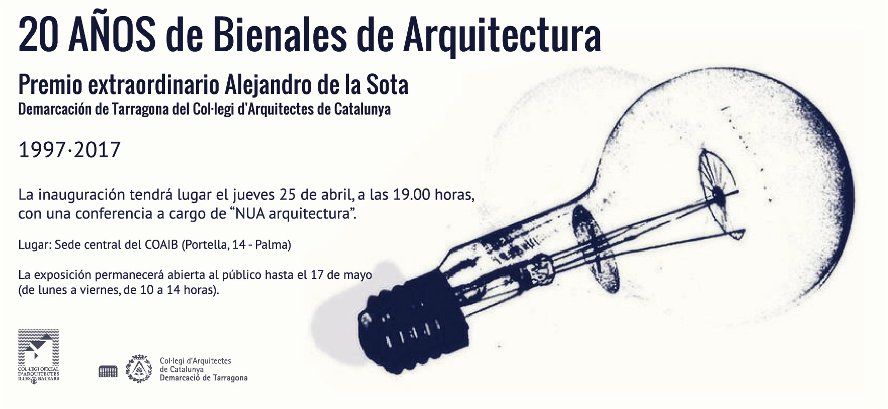 Exposición: 20 años de Bienales de Arquitectura. Premio extraordinario Alejandro de la Sota. 1997-2017. COAIB Inauguración: 25 de abril, a las 19 horas