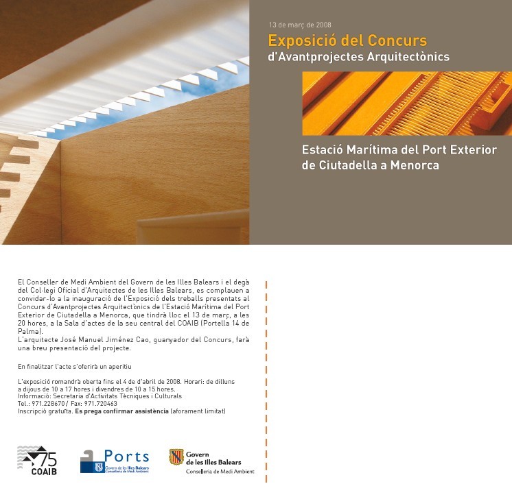 Exposición de los trabajos presentados al Concurso de Anteproyectos Arquitectónicos de la Estación Marítima de Ciutadella (Menorca). Palma, del 13 de marzo al 4 de abril de 2008