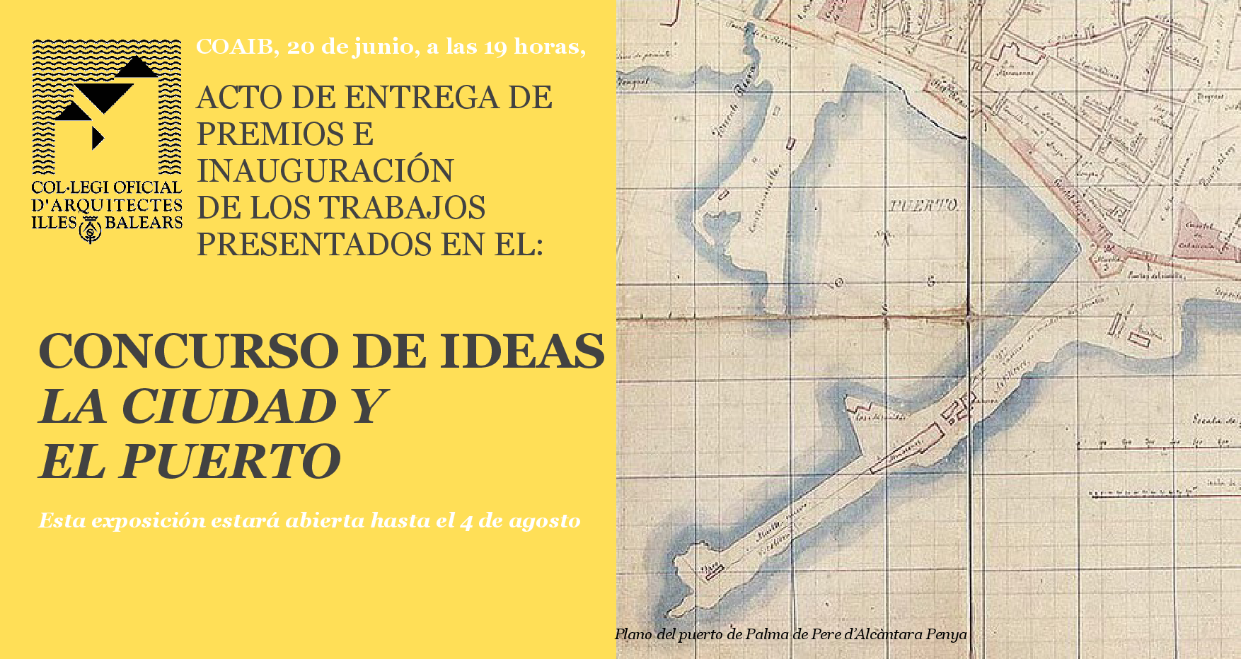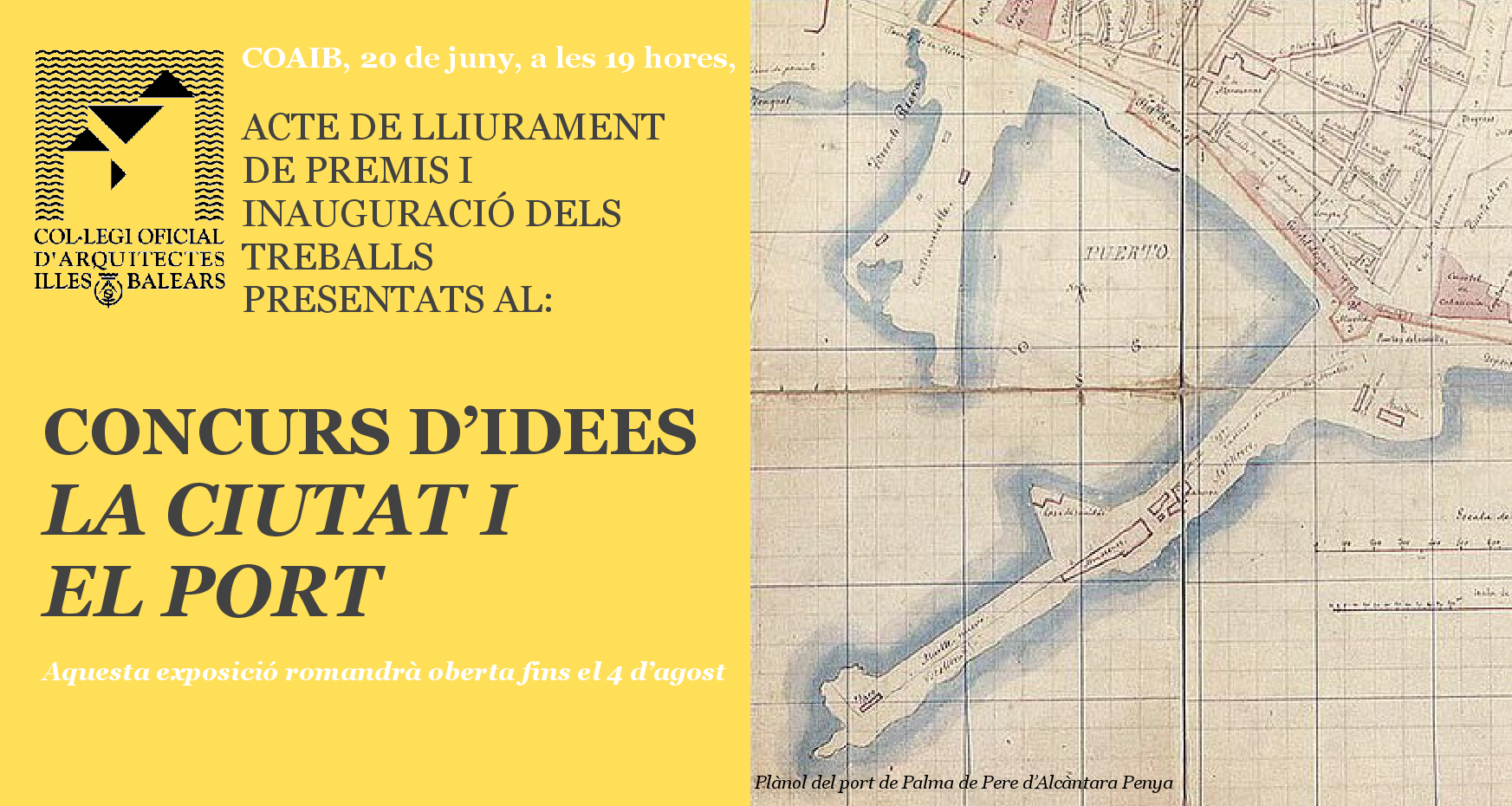Acto de entrega de premios e inauguración de los trabajos presentados al “Concurso de ideas La Ciutat y el Puerto”. COAIB 20 de junio a las 19 h.